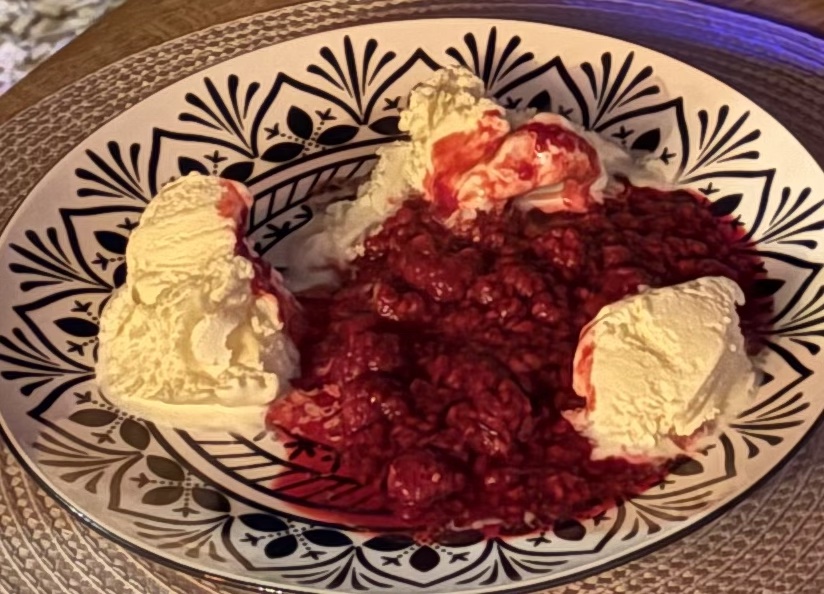Dessert: "Heiße Liebe" (Vanilleeis mit heißen Himbeeren)